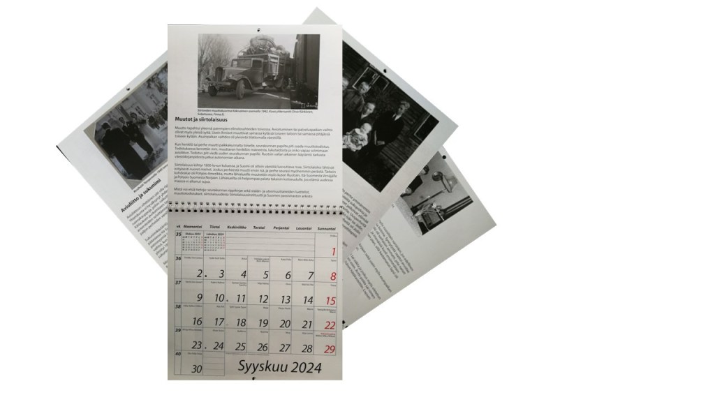 Vantaan Seudun Sukututkijat julkaisee ensi vuoden seinäkalenterin, jonka teemana on ihmisen elinkaari 1800-luvulla. Kalenterin sivu on kooltaan 24 cm * 24 cm, ja käyttövalmiina kalenteri on 48 cm korkea. Aukeaman yläosassa on valokuva sekä ihmisen elämänkaareen liittyvä artikkeli. Alaosassa on normaali kalenteriruudukko nimipäivineen.